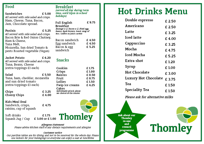 Hot food and drinks are available all day every day from our Cafe. The menu will vary throughout the year, with salads, soups and other added bonuses throughout the different seasons. You are still welcome to bring packed lunches if that suits you.